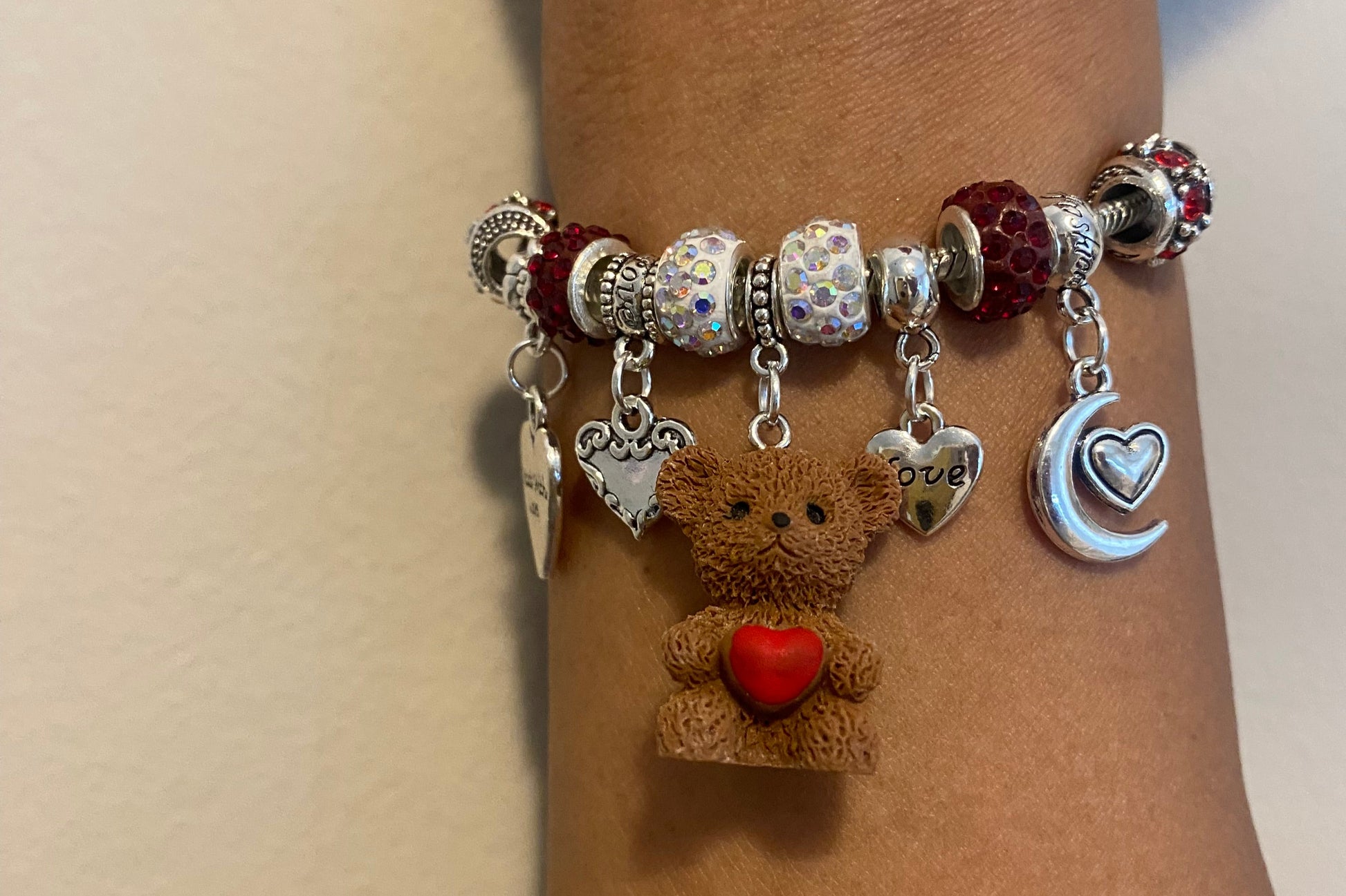 Our Beary Cute pendant charmed bracelet is a must have! This Pandora style bracelet is one of our most sought after designs and rightfully so! It's super cute, fun and flirty! It can be worn anytime of the year and pairs well with Cupid and Blackheart bracelets.